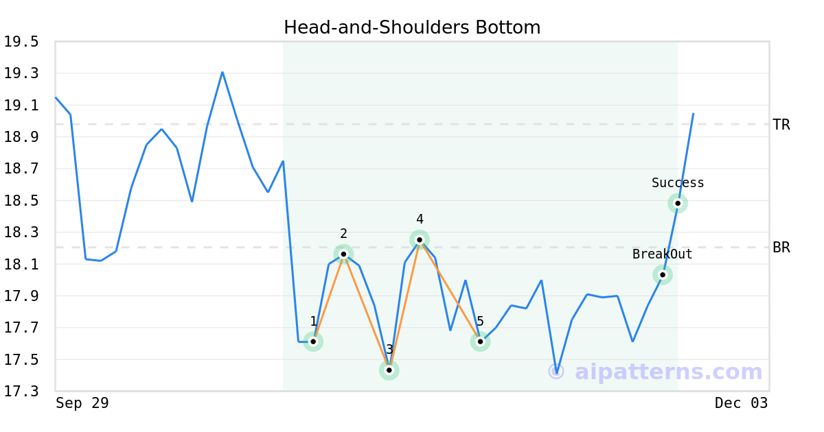 On November 06, 2025, A.I.dvisor detected a Head-and-Shoulders Bottom Pattern (Bullish) for EZCORP (EZPW, $17.61). On November 24, 2025, A.I.dvisor confirmed the Bullish pattern, setting a target price of $18.98. 1 day later, on November 25, 2025, EZPW reached the target price resulting in a for traders who took a long position in the stock.