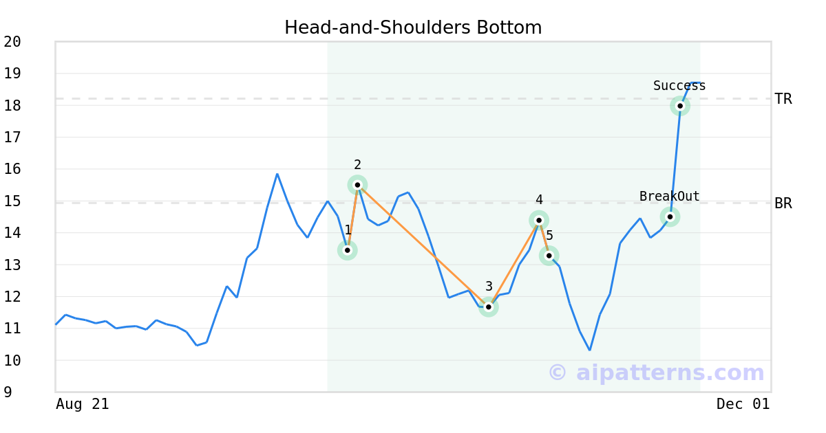 On October 30, 2025, A.I.dvisor detected a Head-and-Shoulders Bottom Pattern (Bullish) for Forte Biosciences Inc (FBRX, $13.27). On November 17, 2025, A.I.dvisor confirmed the Bullish pattern, setting a target price of $18.21. 1 day later, on November 18, 2025, FBRX reached the target price resulting in a +3 for traders who took a long position in the stock.