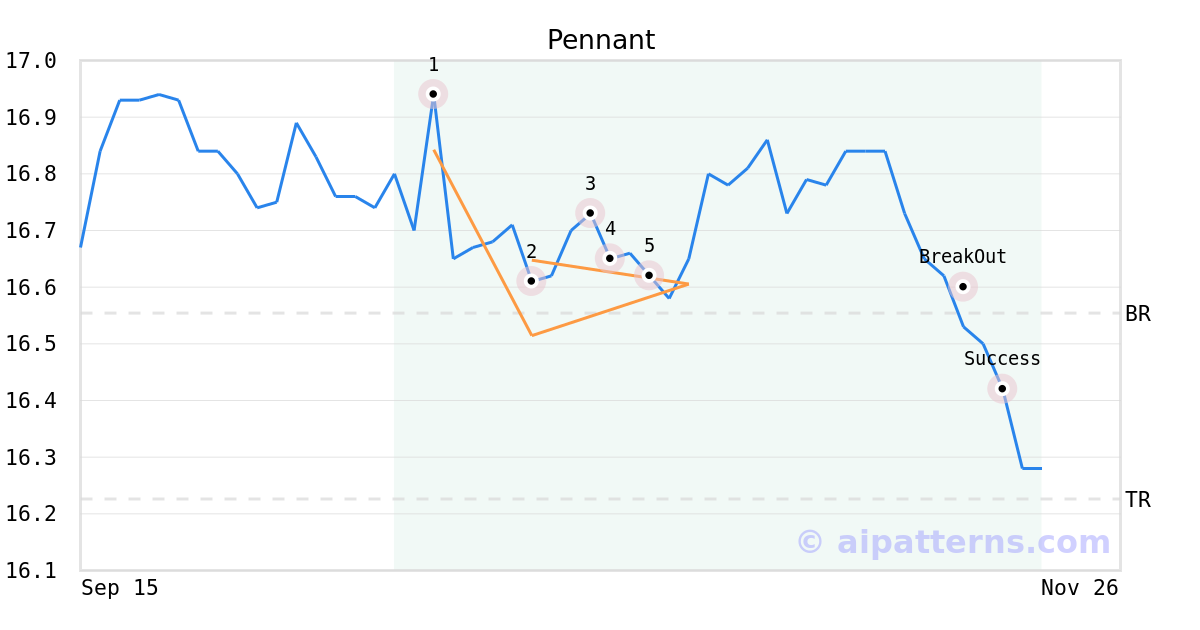 On October 24, 2025, A.I.dvisor detected a Pennant Pattern (Bearish) for Flaherty & Crumrine Preferred and Income Securities Fund (FFC, $16.52). 24 days later, on November 17, 2025, A.I.dvisor confirmed the Bearish pattern, setting a target price of the stock. On November 19, 2025, the stock hit the target price of $16.23 – resulting in a gain for traders who shorted the stock on the pattern detection date.