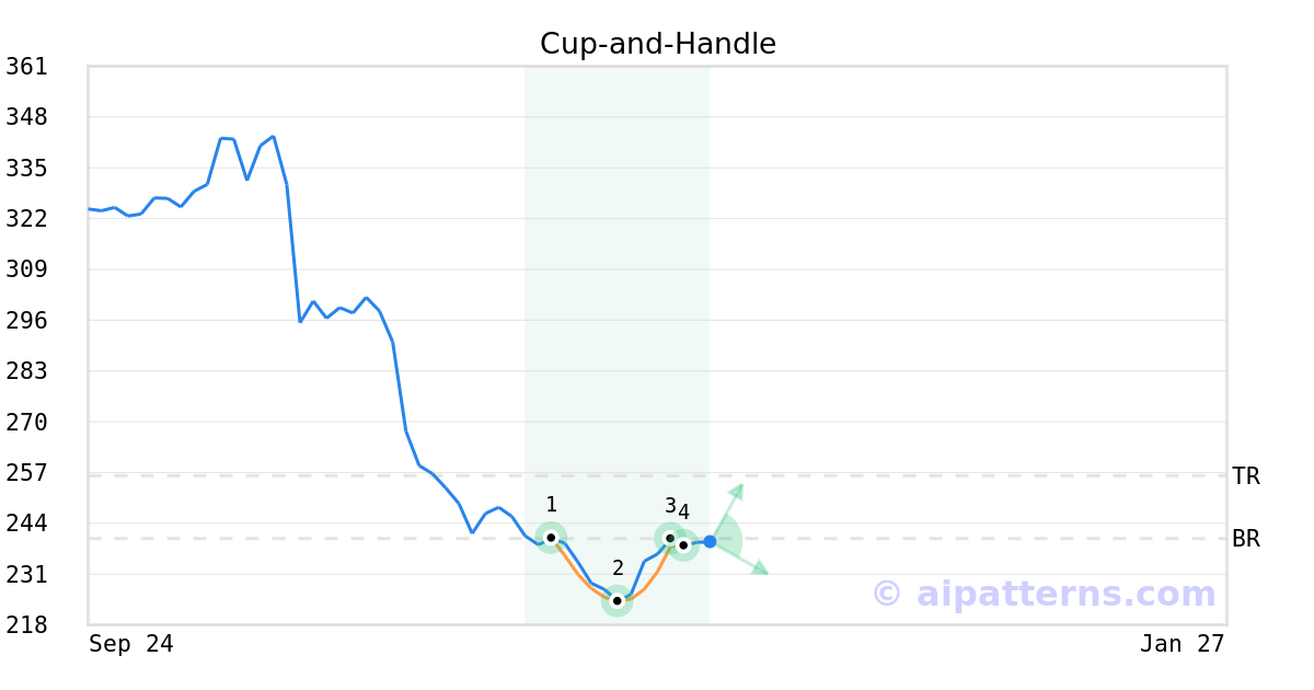 A.I.dvisor detected a bullish Cup-and-Handle pattern for FFIV stock. This pattern was detected on November 26, 2025 . The odds of reaching the target price are 6.