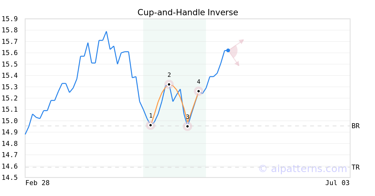 A.I.dvisor detected a bearish Cup-and-Handle Inverse pattern for FGIQX stock. This pattern was detected on May 06, 2024 . The odds of reaching the target price are 6. The Inverted Cup-and-Handle (sometimes called Inverted Cup-and-Holder) pattern forms when prices rise then decline to create an upside-down “U”like shape (1, 2, 3, also known as the Cup), followed by a shorter relatively straight price increase that bounces from the right lip (from 3 to 4, creating the Handle). Consider selling the security short or buying a put option at the downward breakout level. The confirmation move is the breakout of the price below the right cup lip.