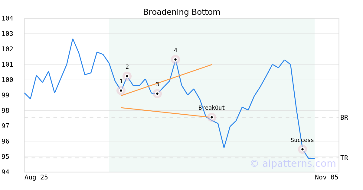 On October 08, 2025, A.I.dvisor detected a Broadening Bottom Pattern (Bearish) for Federal Realty Investment Trust (FRT, $97.55). On October 08, 2025, A.I.dvisor confirmed the Bearish pattern, setting a target price of the stock. On October 29, 2025, the stock hit the target price of $94.92 – resulting in a gain for traders who shorted the stock on the pattern detection date.