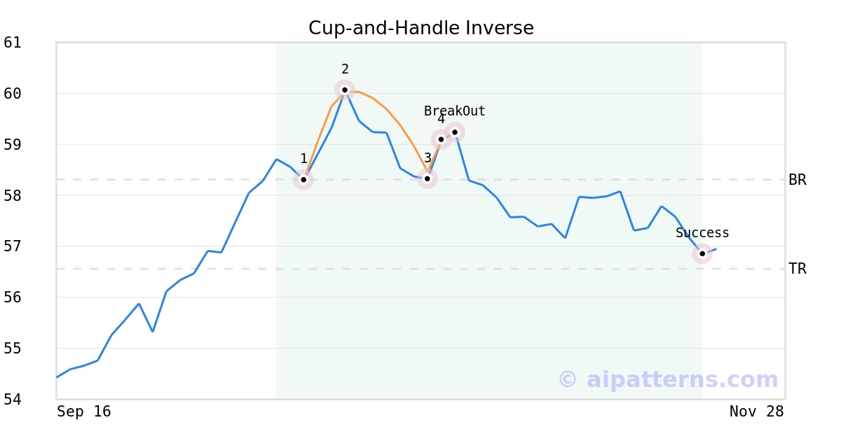 On October 24, 2025, A.I.dvisor detected a Cup-and-Handle Inverse Pattern (Bearish) for Fidelity MSCI Utilities ETF (FUTY, $59.09). 3 days later, on October 27, 2025, A.I.dvisor confirmed the Bearish pattern, setting a target price of the stock. On November 20, 2025, the stock hit the target price of $56.56 – resulting in a gain for traders who shorted the stock on the pattern detection date.