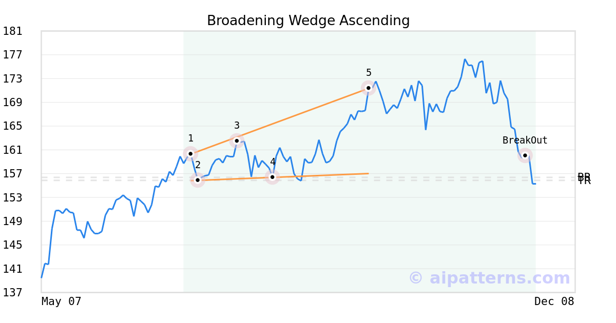 On September 18, 2025, A.I.dvisor detected a Broadening Wedge Ascending Pattern (Bearish) for First Trust Technology AlphaDEX® ETF (FXL, $171.36). 62 days later, on November 19, 2025, A.I.dvisor confirmed the Bearish pattern, setting a target price of the stock. On November 19, 2025, the stock hit the target price of $155.87 – resulting in a gain for traders who shorted the stock on the pattern detection date.