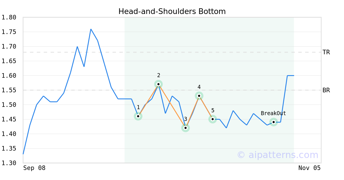 On October 16, 2025, A.I.dvisor detected a Head-and-Shoulders Bottom Pattern (Bullish) for GCT Semiconductor Holding (GCTS, $1.45). On October 29, 2025, A.I.dvisor confirmed the Bullish pattern, setting a target price of $1.68. On October 29, 2025, GCTS reached the target price resulting in a for traders who took a long position in the stock.