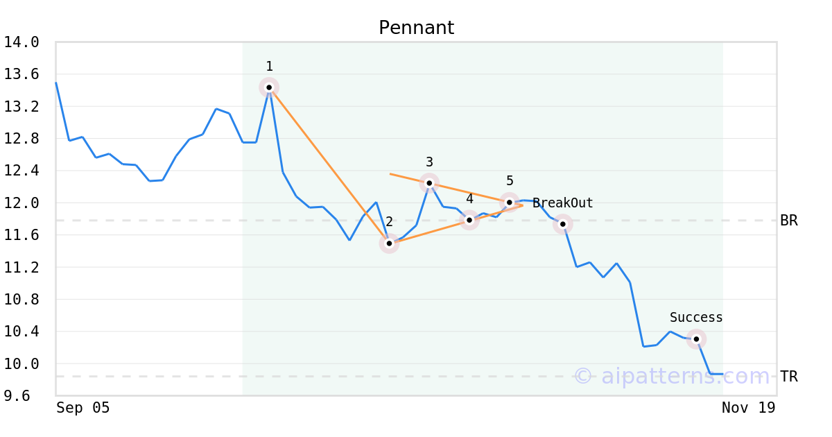 On October 23, 2025, A.I.dvisor detected a Pennant Pattern (Bearish) for Genius Sports Limited (GENI, $12.00). 6 days later, on October 29, 2025, A.I.dvisor confirmed the Bearish pattern, setting a target price of the stock. On November 12, 2025, the stock hit the target price of $9.84 – resulting in a +1 gain for traders who shorted the stock on the pattern detection date.