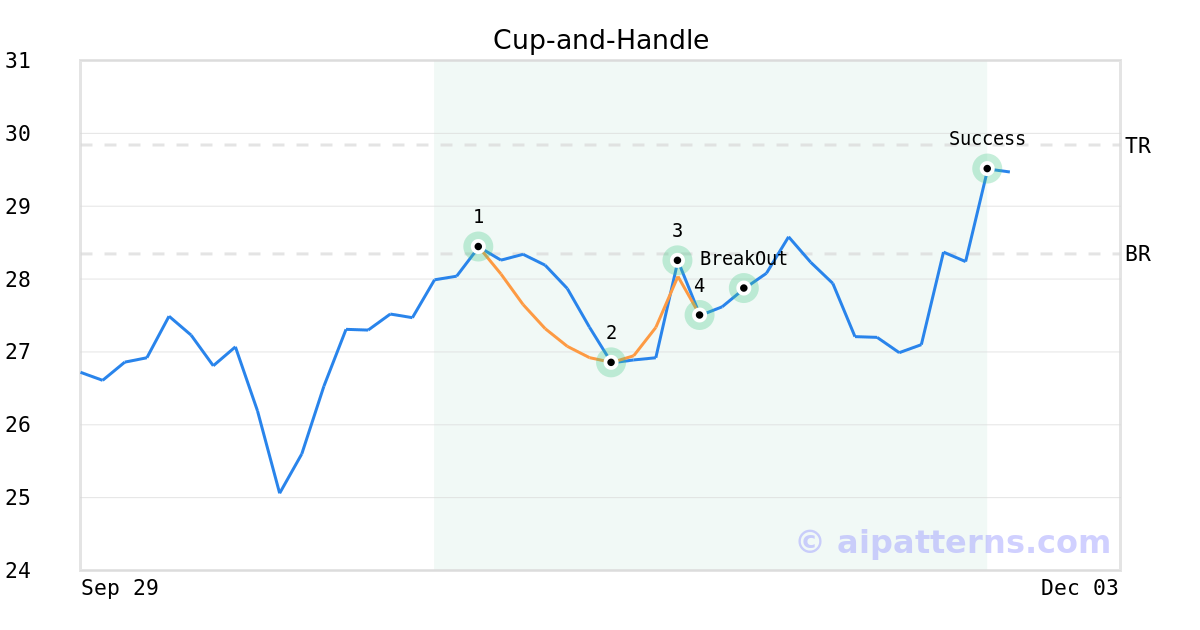 On November 06, 2025, A.I.dvisor detected a Cup-and-Handle Pattern (Bullish) for G-III Apparel Group Ltd (GIII, $27.50). On November 10, 2025, A.I.dvisor confirmed the Bullish pattern, setting a target price of $29.84. 15 days later, on November 25, 2025, GIII reached the target price resulting in a for traders who took a long position in the stock.