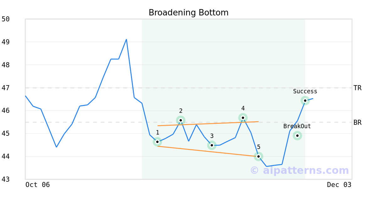 On November 17, 2025, A.I.dvisor detected a Broadening Bottom Pattern (Bullish) for Gorman-Rupp Company (The) (GRC, $43.99). On November 24, 2025, A.I.dvisor confirmed the Bullish pattern, setting a target price of $46.99. 1 day later, on November 25, 2025, GRC reached the target price resulting in a for traders who took a long position in the stock.