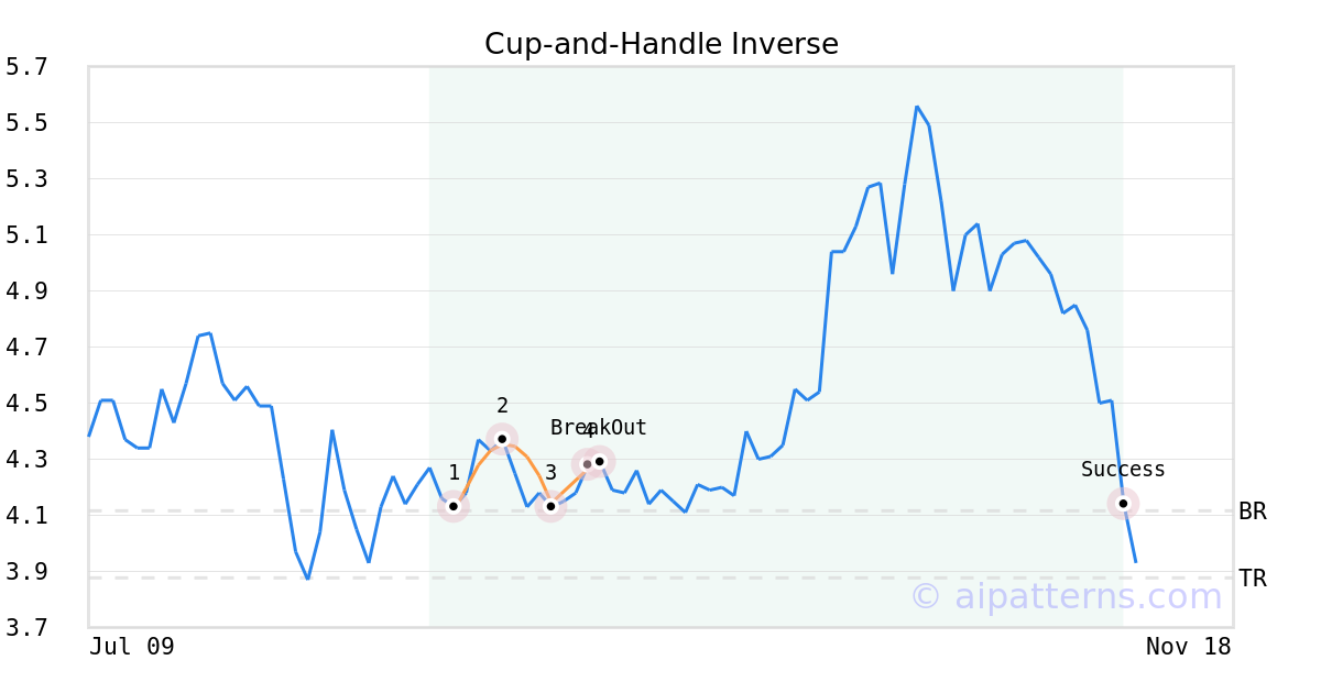 On September 05, 2025, A.I.dvisor detected a Cup-and-Handle Inverse Pattern (Bearish) for Ferroglobe PLC (GSM, $4.27). 3 days later, on September 08, 2025, A.I.dvisor confirmed the Bearish pattern, setting a target price of the stock. On November 06, 2025, the stock hit the target price of $3.88 – resulting in a gain for traders who shorted the stock on the pattern detection date.