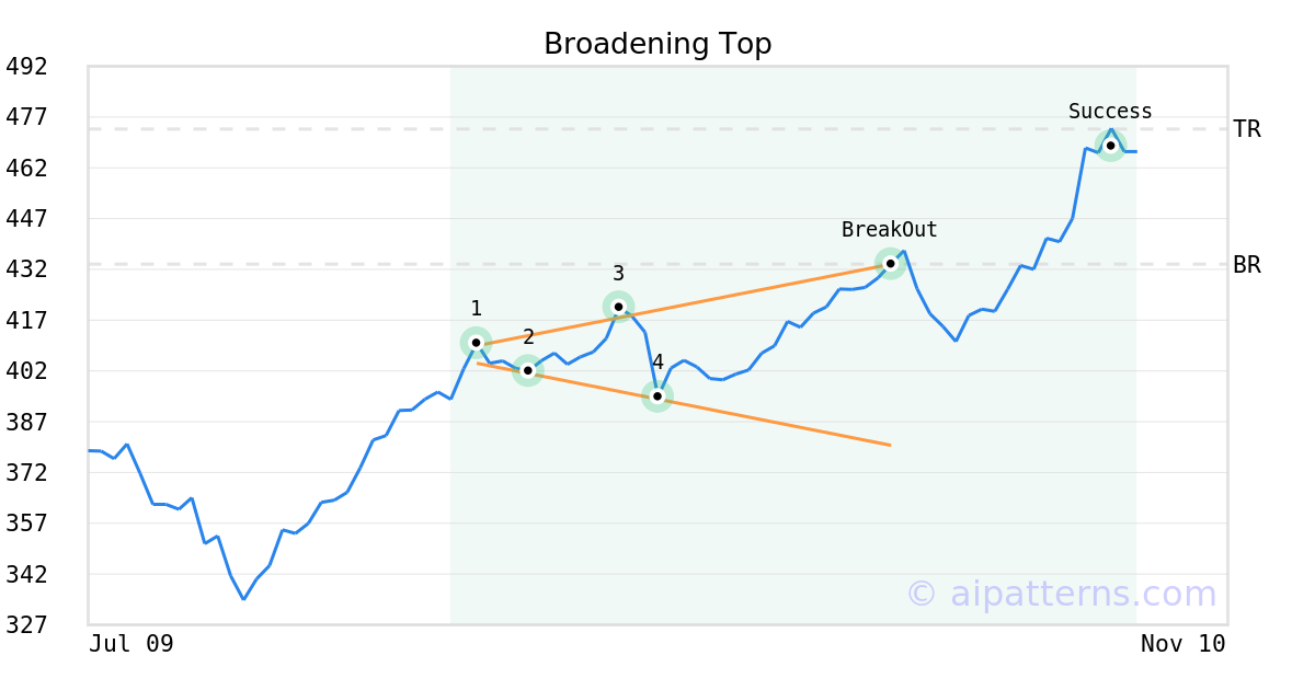 On October 06, 2025, A.I.dvisor detected a Broadening Top Pattern (Bullish) for HCA Healthcare (HCA, $433.55). On October 06, 2025, A.I.dvisor confirmed the Bullish pattern, setting a target price of $473.44. 23 days later, on October 29, 2025, HCA reached the target price resulting in a for traders who took a long position in the stock.