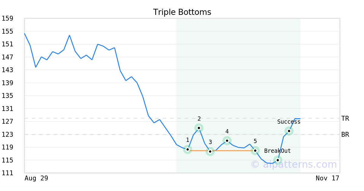 On October 28, 2025, A.I.dvisor detected a Triple Bottoms Pattern (Bullish) for Hamilton Lane (HLNE, $117.89). On November 03, 2025, A.I.dvisor confirmed the Bullish pattern, setting a target price of $127.97. 2 days later, on November 05, 2025, HLNE reached the target price resulting in a for traders who took a long position in the stock.