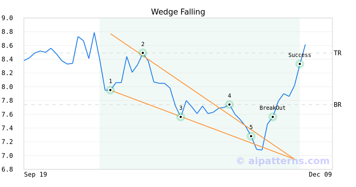 On November 18, 2025, A.I.dvisor detected a Wedge Falling Pattern (Bullish) for Heartland Express (HTLD, $7.28). On November 24, 2025, A.I.dvisor confirmed the Bullish pattern, setting a target price of $8.49. 8 days later, on December 02, 2025, HTLD reached the target price resulting in a +1 for traders who took a long position in the stock.