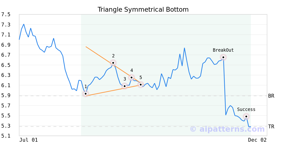 On September 16, 2025, A.I.dvisor detected a Triangle Symmetrical Bottom Pattern (Bearish) for ICL Group Ltd (ICL, $6.11). 50 days later, on November 05, 2025, A.I.dvisor confirmed the Bearish pattern, setting a target price of the stock. On November 19, 2025, the stock hit the target price of $5.28 – resulting in a +1 gain for traders who shorted the stock on the pattern detection date.