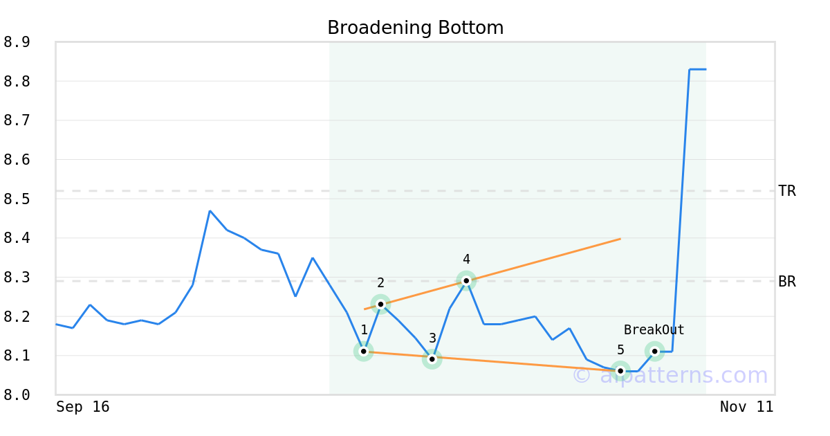 On October 31, 2025, A.I.dvisor detected a Broadening Bottom Pattern (Bullish) for Icahn Enterprises LP (IEP, $8.06). On November 04, 2025, A.I.dvisor confirmed the Bullish pattern, setting a target price of $8.52. On November 04, 2025, IEP reached the target price resulting in a for traders who took a long position in the stock.