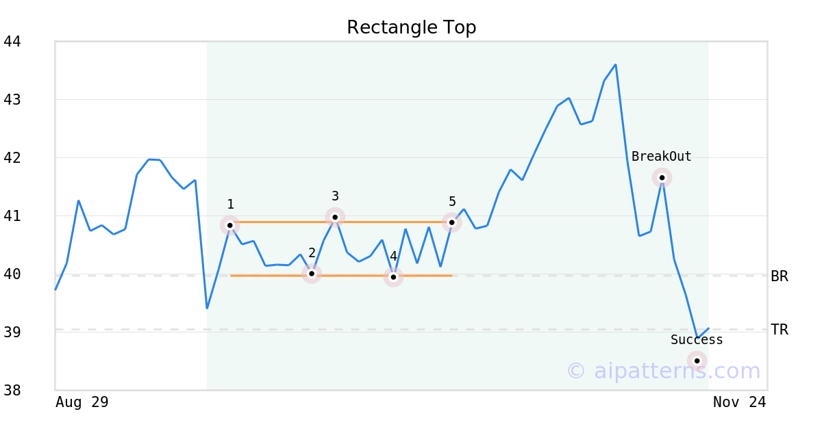 On October 17, 2025, A.I.dvisor detected a Rectangle Top Pattern (Bearish) for Intercorp Financial Services (IFS, $40.88). 26 days later, on November 12, 2025, A.I.dvisor confirmed the Bearish pattern, setting a target price of the stock. On November 17, 2025, the stock hit the target price of $39.05 – resulting in a gain for traders who shorted the stock on the pattern detection date.