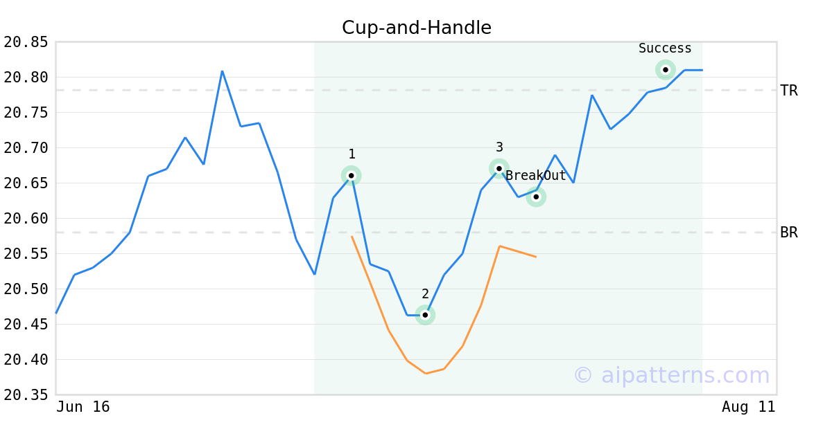 On July 24, 2025, A.I.dvisor detected a Cup-and-Handle Pattern (Bullish) for Principal Investment Grd Corp Actv ETF (IG, $20.55). On July 24, 2025, A.I.dvisor confirmed the Bullish pattern, setting a target price of $20.78. 11 days later, on August 04, 2025, IG reached the target price resulting in a for traders who took a long position in the stock.