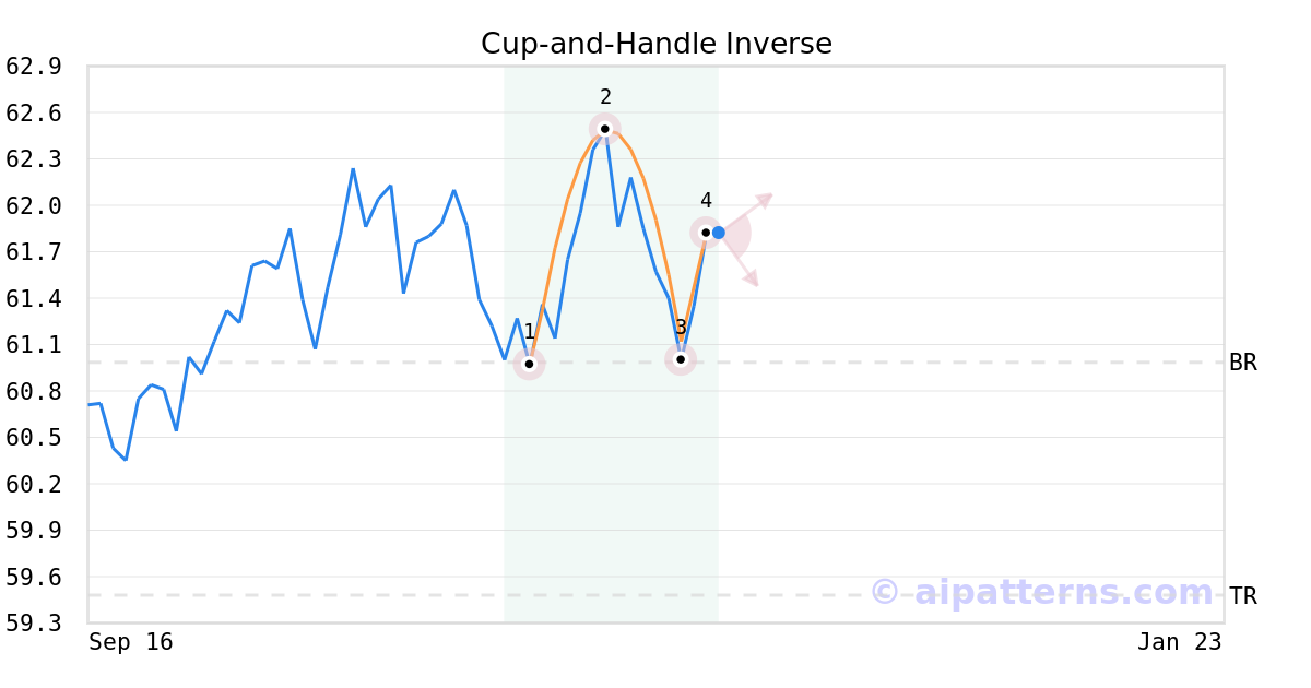 A.I.dvisor detected a bearish Cup-and-Handle Inverse pattern for IGF stock. This pattern was detected on November 24, 2025 . The odds of reaching the target price are 6.