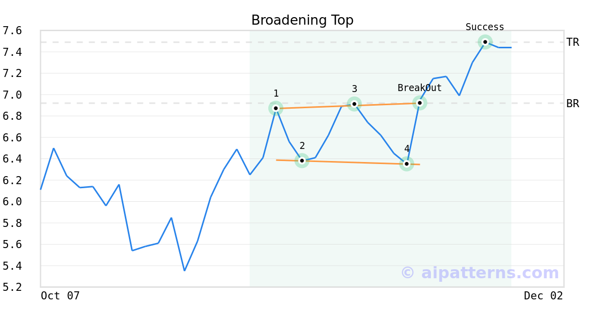 On November 17, 2025, A.I.dvisor detected a Broadening Top Pattern (Bullish) for Immuneering Corp (IMRX, $6.92). On November 17, 2025, A.I.dvisor confirmed the Bullish pattern, setting a target price of $7.49. 7 days later, on November 24, 2025, IMRX reached the target price resulting in a for traders who took a long position in the stock.