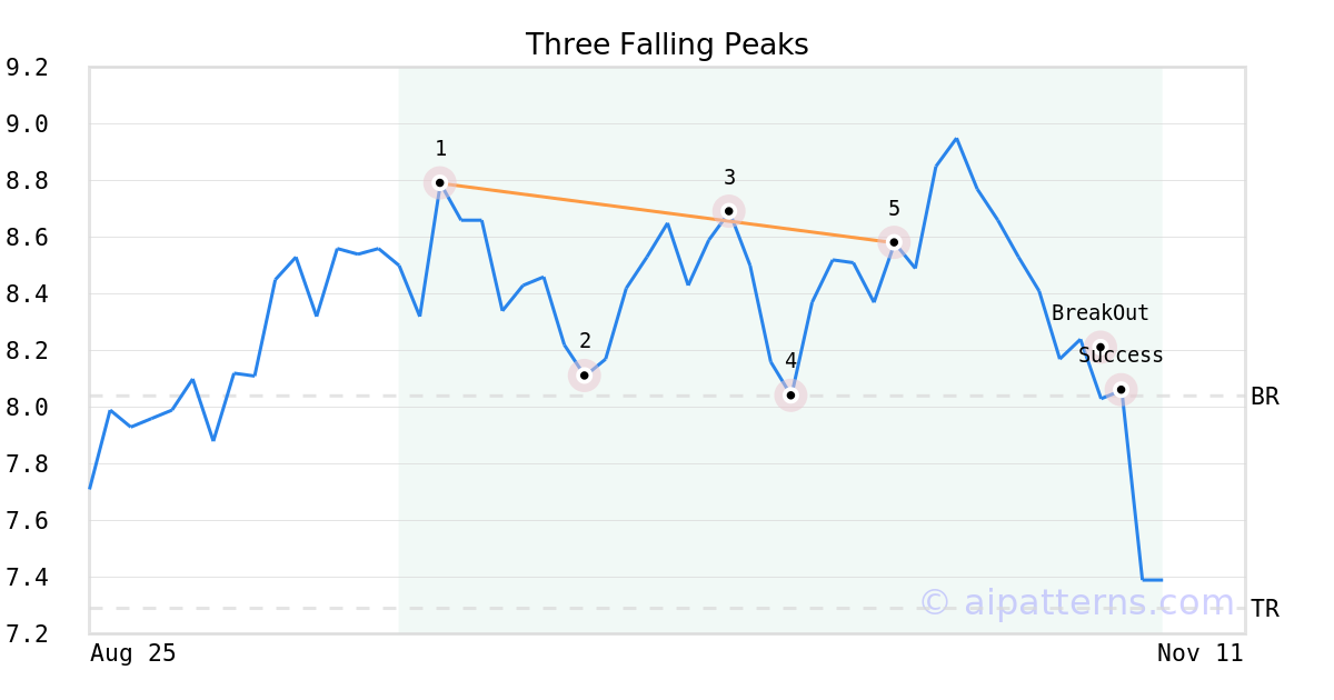 On October 20, 2025, A.I.dvisor detected a Three Falling Peaks Pattern (Bearish) for Inogen (INGN, $8.58). 14 days later, on November 03, 2025, A.I.dvisor confirmed the Bearish pattern, setting a target price of the stock. On November 04, 2025, the stock hit the target price of $7.29 – resulting in a gain for traders who shorted the stock on the pattern detection date.