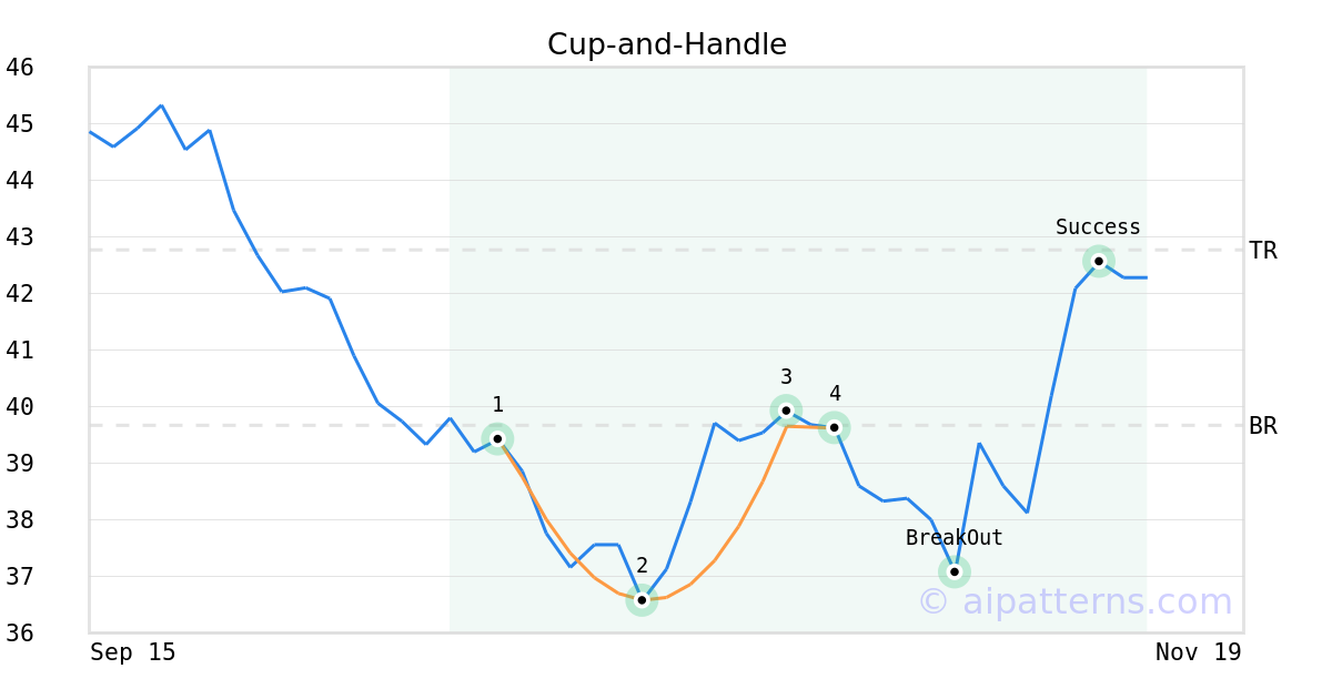 On October 28, 2025, A.I.dvisor detected a Cup-and-Handle Pattern (Bullish) for Intapp (INTA, $39.62). On November 04, 2025, A.I.dvisor confirmed the Bullish pattern, setting a target price of $42.77. 8 days later, on November 12, 2025, INTA reached the target price resulting in a for traders who took a long position in the stock.
