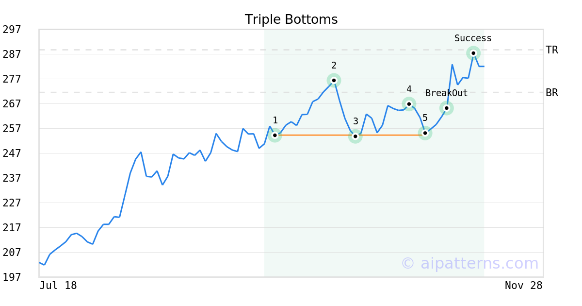On October 29, 2025, A.I.dvisor detected a Triple Bottoms Pattern (Bullish) for Investors Title Company (ITIC, $255.05). On November 04, 2025, A.I.dvisor confirmed the Bullish pattern, setting a target price of $288.77. 7 days later, on November 11, 2025, ITIC reached the target price resulting in a +1 for traders who took a long position in the stock.