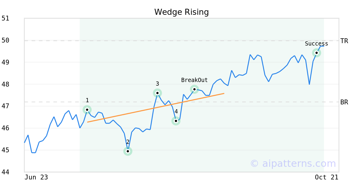 On August 27, 2025, A.I.dvisor detected a Wedge Rising Pattern (Bullish) for NEOS Russell 2000 High Income ETF (IWMI, $47.19). On August 27, 2025, A.I.dvisor confirmed the Bullish pattern, setting a target price of $49.98. 48 days later, on October 14, 2025, IWMI reached the target price resulting in a for traders who took a long position in the stock.