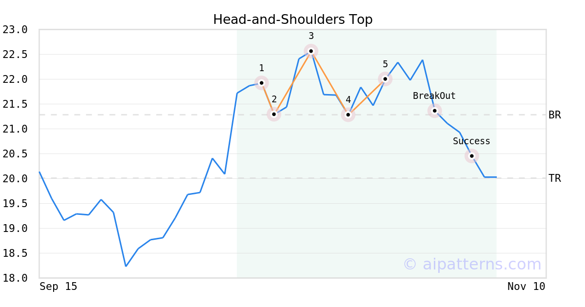 On October 23, 2025, A.I.dvisor detected a Head-and-Shoulders Top Pattern (Bearish) for JAMES HARDIE INDUSTRIES plc (JHX, $22.00). 6 days later, on October 29, 2025, A.I.dvisor confirmed the Bearish pattern, setting a target price of the stock. On November 03, 2025, the stock hit the target price of $20.01 – resulting in a gain for traders who shorted the stock on the pattern detection date.