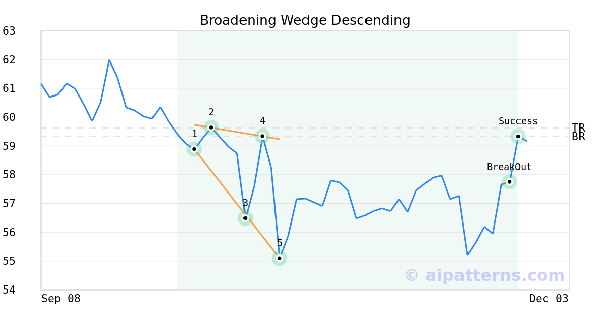 On October 16, 2025, A.I.dvisor detected a Broadening Wedge Descending Pattern (Bullish) for State Street® SPDR® S&P® Bank ETF (KBE, $55.09). On November 24, 2025, A.I.dvisor confirmed the Bullish pattern, setting a target price of $59.63. 1 day later, on November 25, 2025, KBE reached the target price resulting in a for traders who took a long position in the stock.