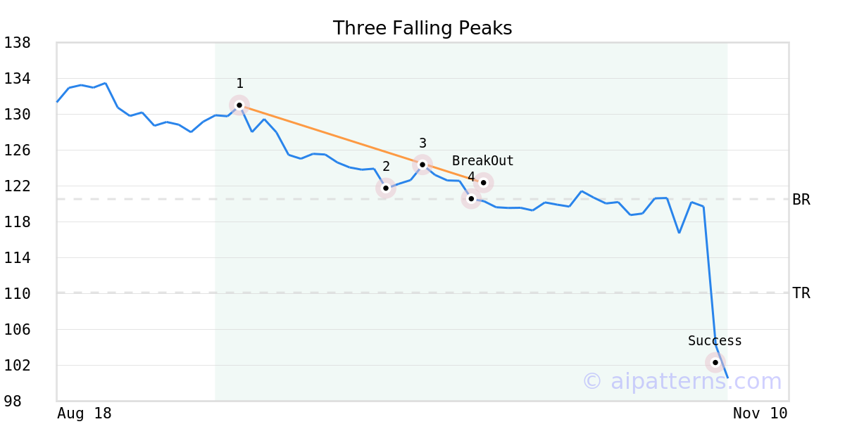 On October 07, 2025, A.I.dvisor detected a Three Falling Peaks Pattern (Bearish) for Kimberly-Clark Corp (KMB, $122.33). On October 07, 2025, A.I.dvisor confirmed the Bearish pattern, setting a target price of the stock. On November 03, 2025, the stock hit the target price of $110.11 – resulting in a +1 gain for traders who shorted the stock on the pattern detection date.