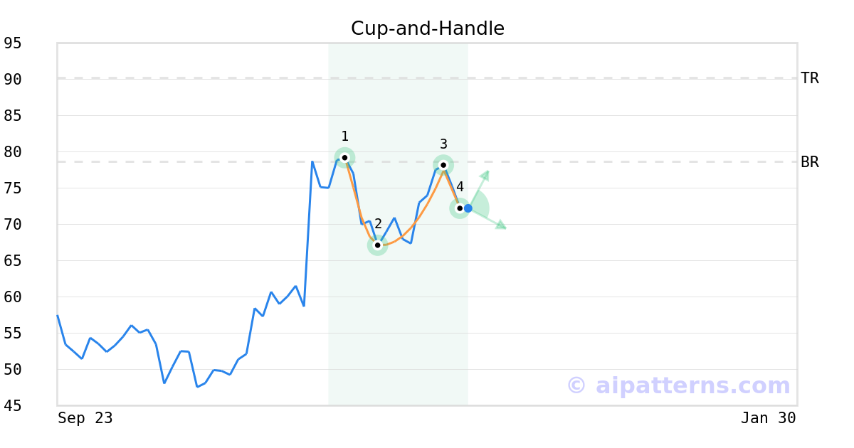 A.I.dvisor detected a bullish Cup-and-Handle pattern for LMND stock. This pattern was detected on December 02, 2025 . The odds of reaching the target price are 6.