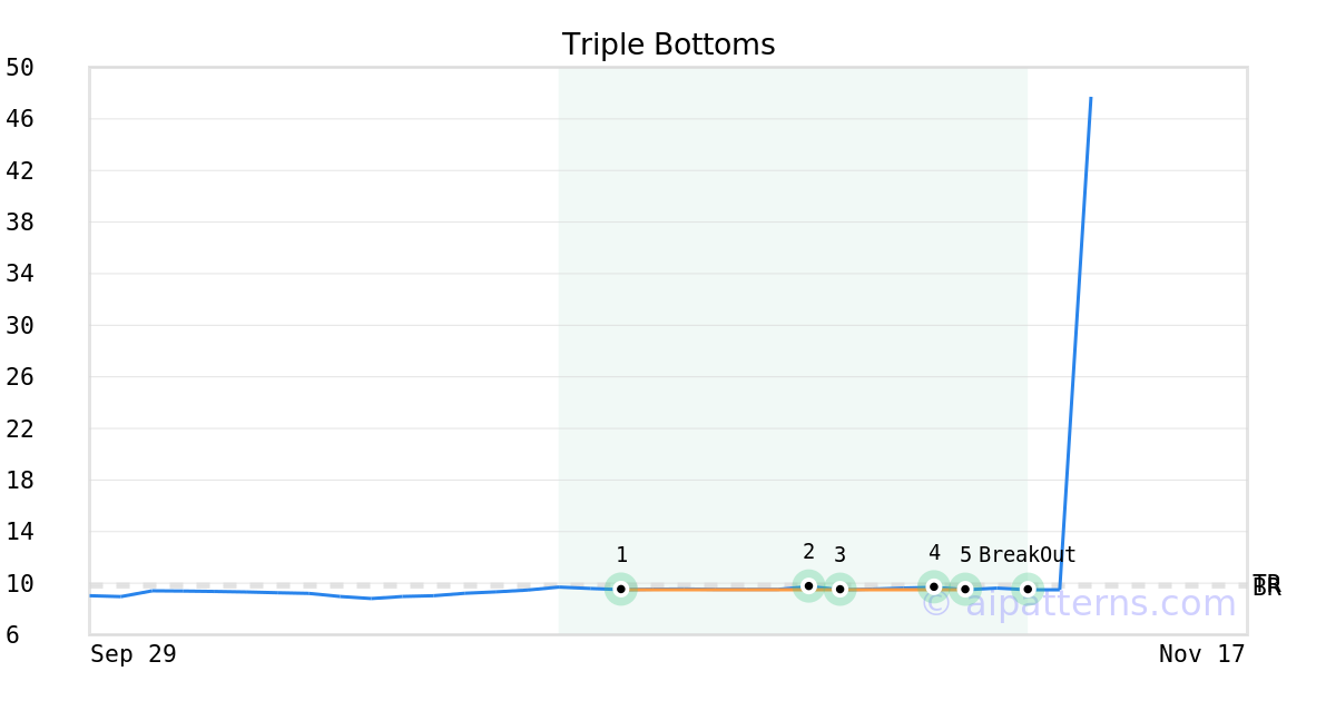 On November 06, 2025, A.I.dvisor detected a Triple Bottoms Pattern (Bullish) for LXP Industrial Trust (LXP, $9.49). On November 10, 2025, A.I.dvisor confirmed the Bullish pattern, setting a target price of $9.93. On November 10, 2025, LXP reached the target price resulting in a for traders who took a long position in the stock.