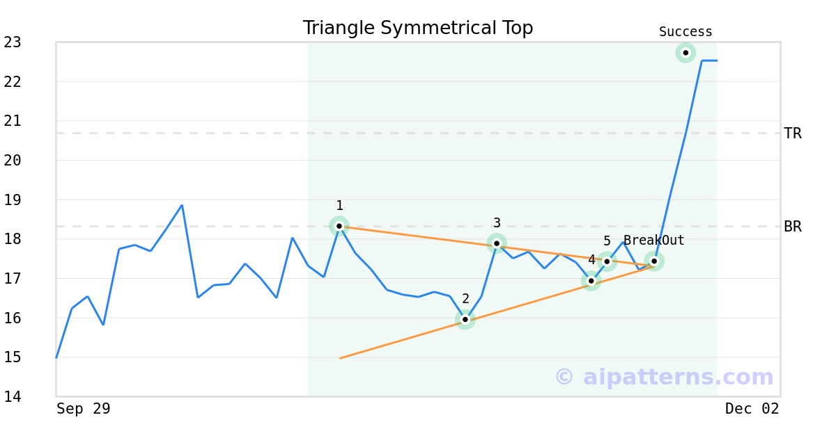 On November 17, 2025, A.I.dvisor detected a Triangle Symmetrical Top Pattern (Bullish) for Lyell Immunopharma Inc (LYEL, $17.42). On November 20, 2025, A.I.dvisor confirmed the Bullish pattern, setting a target price of $20.69. 4 days later, on November 24, 2025, LYEL reached the target price resulting in a +3 for traders who took a long position in the stock.
