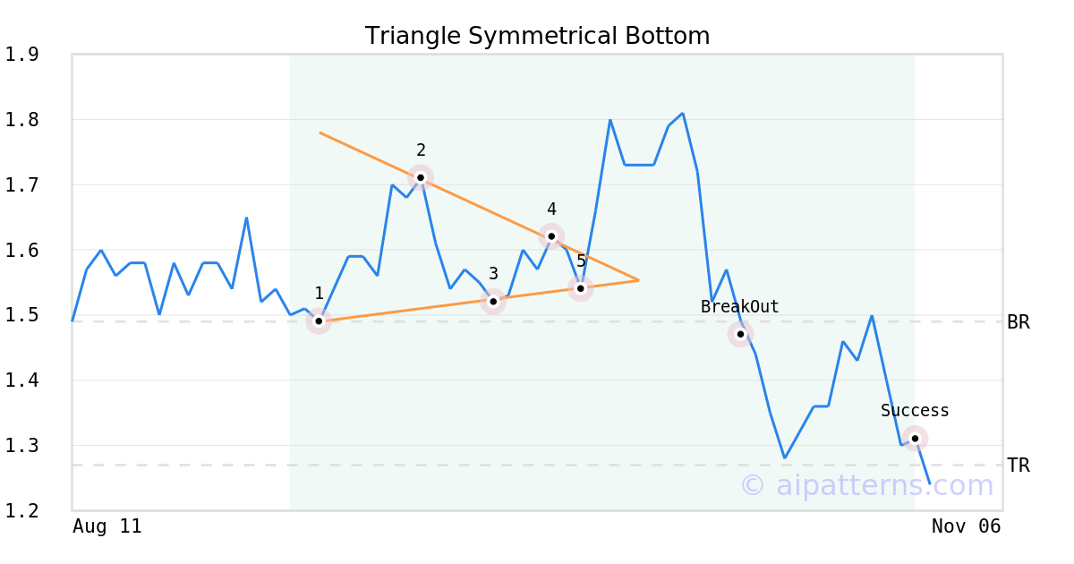 On September 30, 2025, A.I.dvisor detected a Triangle Symmetrical Bottom Pattern (Bearish) for MAIA Biotechnology (MAIA, $1.54). 14 days later, on October 14, 2025, A.I.dvisor confirmed the Bearish pattern, setting a target price of the stock. On October 30, 2025, the stock hit the target price of $1.27 – resulting in a +1 gain for traders who shorted the stock on the pattern detection date.
