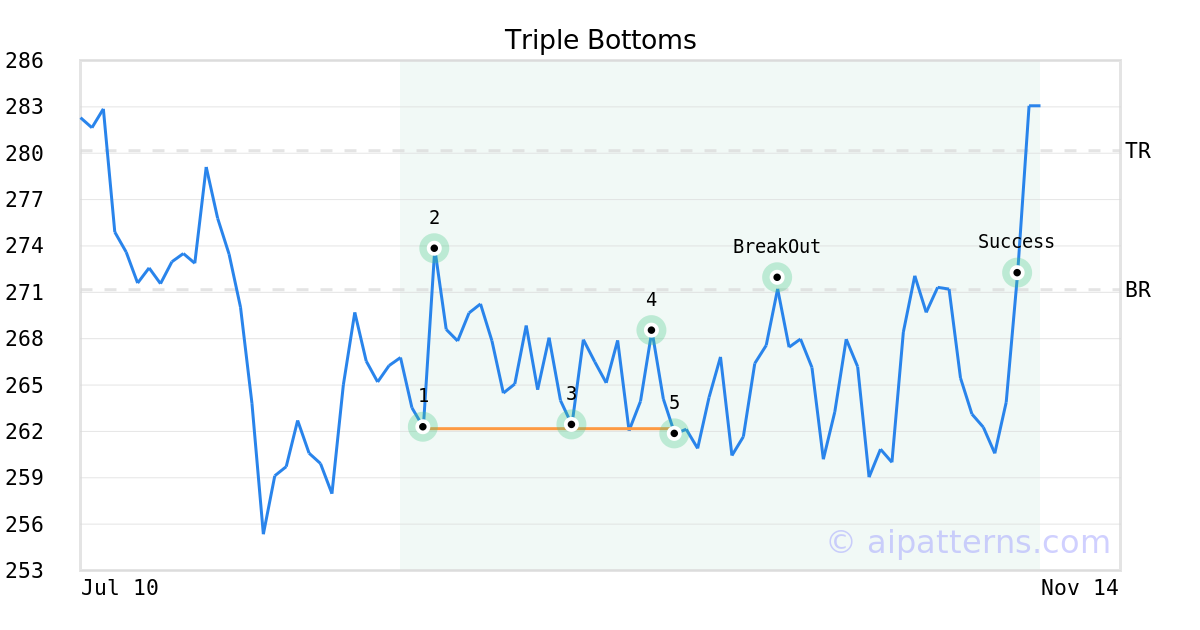 On September 23, 2025, A.I.dvisor detected a Triple Bottoms Pattern (Bullish) for Marriott International (MAR, $261.84). On October 06, 2025, A.I.dvisor confirmed the Bullish pattern, setting a target price of $280.16. 29 days later, on November 04, 2025, MAR reached the target price resulting in a for traders who took a long position in the stock.