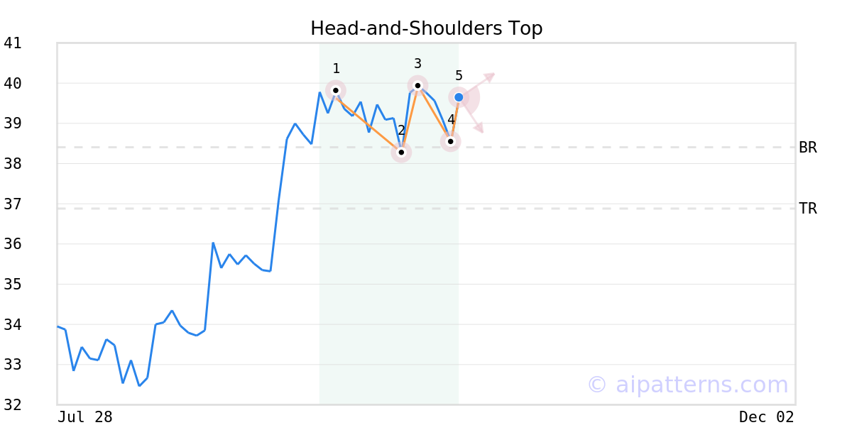 The Tickeron SMR rating for this company is (best 1 - 100 worst), indicating slightly better than average sales and a considerably profitable business model. SMR (Sales, Margin, Return on Equity) rating is based on comparative analysis of weighted Sales, Income Margin and Return on Equity values compared against S&P 500 index constituents. The weighted SMR value is a proprietary formula developed by Tickeron and represents an overall profitability measure for a stock.