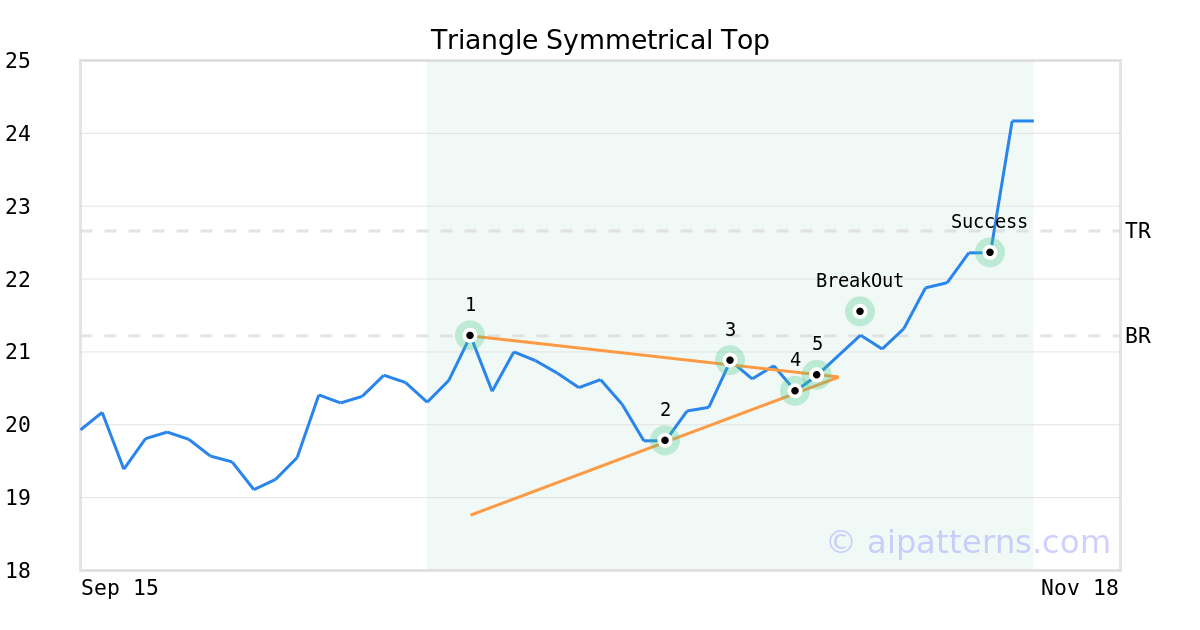 On October 31, 2025, A.I.dvisor detected a Triangle Symmetrical Top Pattern (Bullish) for Magic Software Enterprises Ltd (MGIC, $20.68). On November 03, 2025, A.I.dvisor confirmed the Bullish pattern, setting a target price of $22.66. 8 days later, on November 11, 2025, MGIC reached the target price resulting in a for traders who took a long position in the stock.