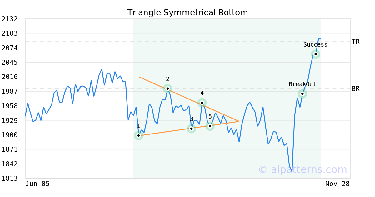 On September 16, 2025, A.I.dvisor detected a Triangle Symmetrical Bottom Pattern (Bullish) for Markel Group (MKL, $1917.21). On November 04, 2025, A.I.dvisor confirmed the Bullish pattern, setting a target price of $2086.30. 7 days later, on November 11, 2025, MKL reached the target price resulting in a for traders who took a long position in the stock.