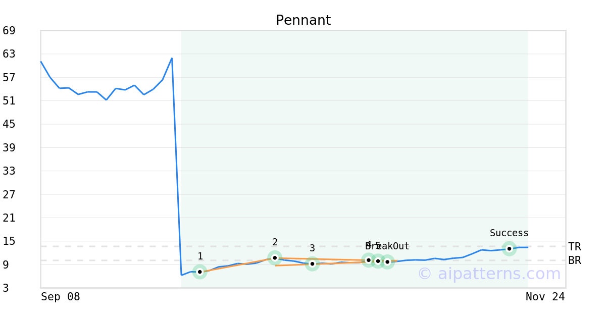 On October 28, 2025, A.I.dvisor detected a Pennant Pattern (Bullish) for MoonLake Immunotherapeutics (MLTX, $9.82). On October 29, 2025, A.I.dvisor confirmed the Bullish pattern, setting a target price of $13.67. 19 days later, on November 17, 2025, MLTX reached the target price resulting in a +3 for traders who took a long position in the stock.