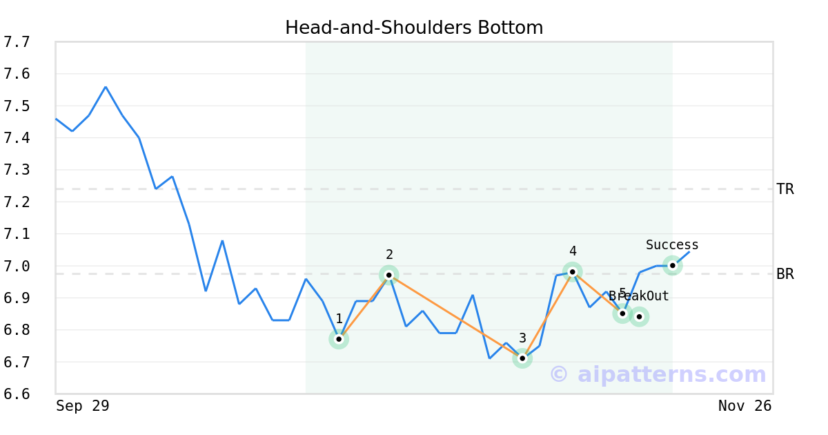 On November 14, 2025, A.I.dvisor detected a Head-and-Shoulders Bottom Pattern (Bullish) for Hello Group (MOMO, $6.85). On November 17, 2025, A.I.dvisor confirmed the Bullish pattern, setting a target price of $7.24. 2 days later, on November 19, 2025, MOMO reached the target price resulting in a for traders who took a long position in the stock.