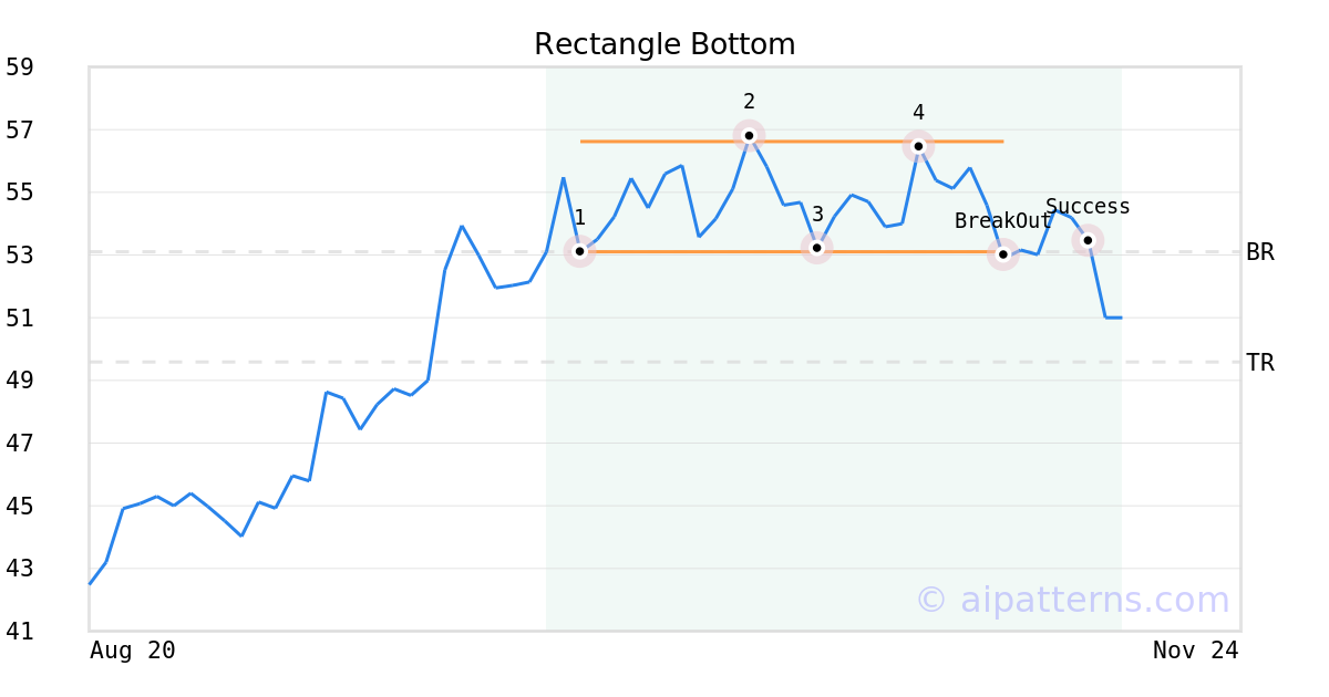 On November 05, 2025, A.I.dvisor detected a Rectangle Bottom Pattern (Bearish) for M-tron Industries (MPTI, $53.00). On November 05, 2025, A.I.dvisor confirmed the Bearish pattern, setting a target price of the stock. On November 12, 2025, the stock hit the target price of $49.59 – resulting in a gain for traders who shorted the stock on the pattern detection date.