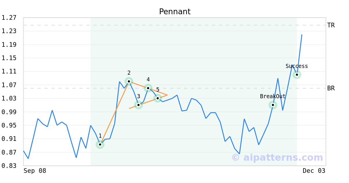 On October 16, 2025, A.I.dvisor detected a Pennant Pattern (Bullish) for Marker Therapeutics (MRKR, $1.03). On November 18, 2025, A.I.dvisor confirmed the Bullish pattern, setting a target price of $1.25. 7 days later, on November 25, 2025, MRKR reached the target price resulting in a for traders who took a long position in the stock.