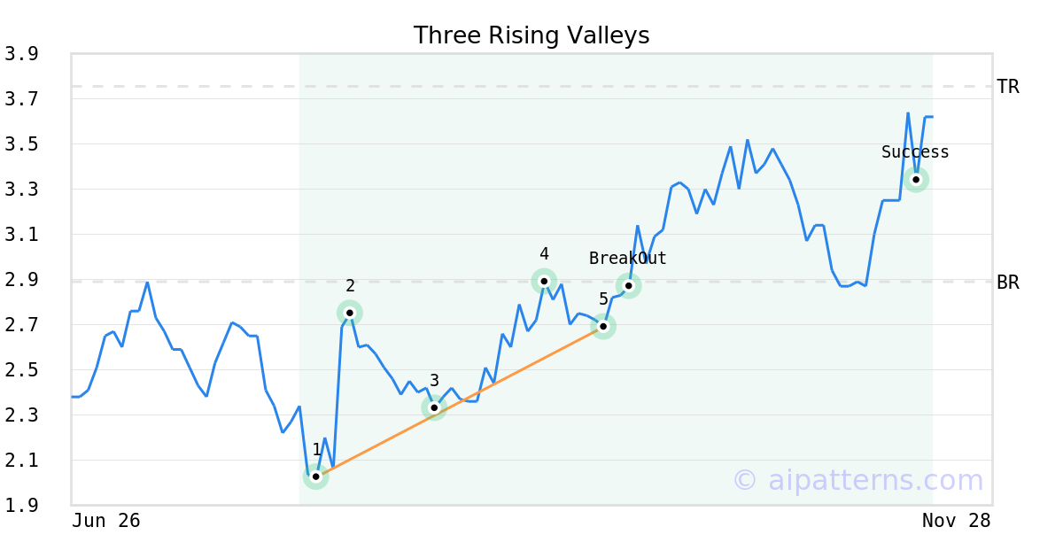 On September 25, 2025, A.I.dvisor detected a Three Rising Valleys Pattern (Bullish) for Maravai LifeSciences Holdings (MRVI, $2.69). On September 30, 2025, A.I.dvisor confirmed the Bullish pattern, setting a target price of $3.76. 48 days later, on November 17, 2025, MRVI reached the target price resulting in a +2 for traders who took a long position in the stock.