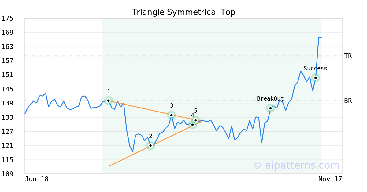 On September 10, 2025, A.I.dvisor detected a Triangle Symmetrical Top Pattern (Bullish) for MACOM Technology Solutions Holdings (MTSI, $131.70). On October 15, 2025, A.I.dvisor confirmed the Bullish pattern, setting a target price of $159.04. 21 days later, on November 05, 2025, MTSI reached the target price resulting in a +1 for traders who took a long position in the stock.