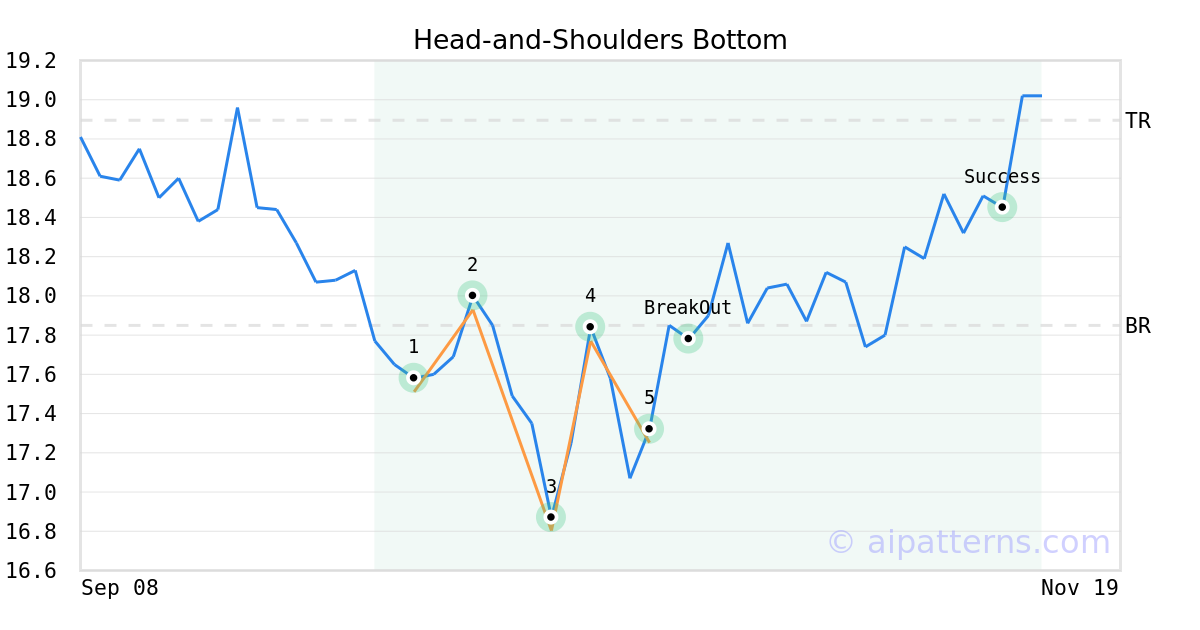 On October 17, 2025, A.I.dvisor detected a Head-and-Shoulders Bottom Pattern (Bullish) for NB Bancorp (NBBK, $17.25). On October 21, 2025, A.I.dvisor confirmed the Bullish pattern, setting a target price of $18.90. 22 days later, on November 12, 2025, NBBK reached the target price resulting in a for traders who took a long position in the stock.