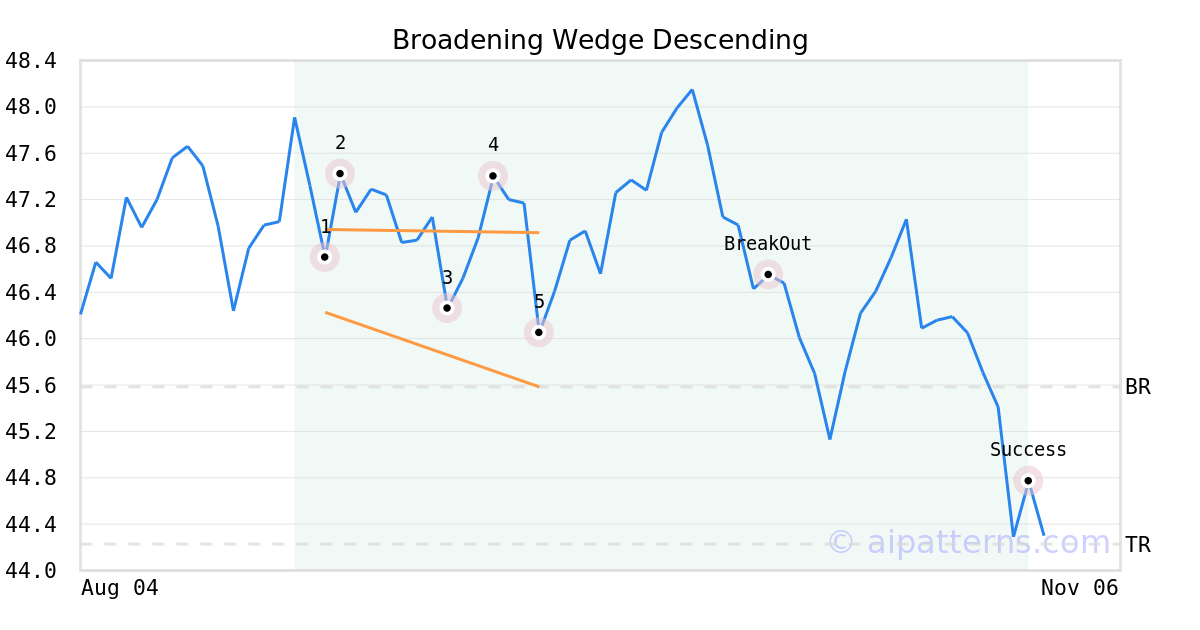 On September 16, 2025, A.I.dvisor detected a Broadening Wedge Descending Pattern (Bearish) for New Jersey Resources Corp (NJR, $45.58). 21 days later, on October 07, 2025, A.I.dvisor confirmed the Bearish pattern, setting a target price of the stock. On October 30, 2025, the stock hit the target price of $44.23 – resulting in a gain for traders who shorted the stock on the pattern detection date.