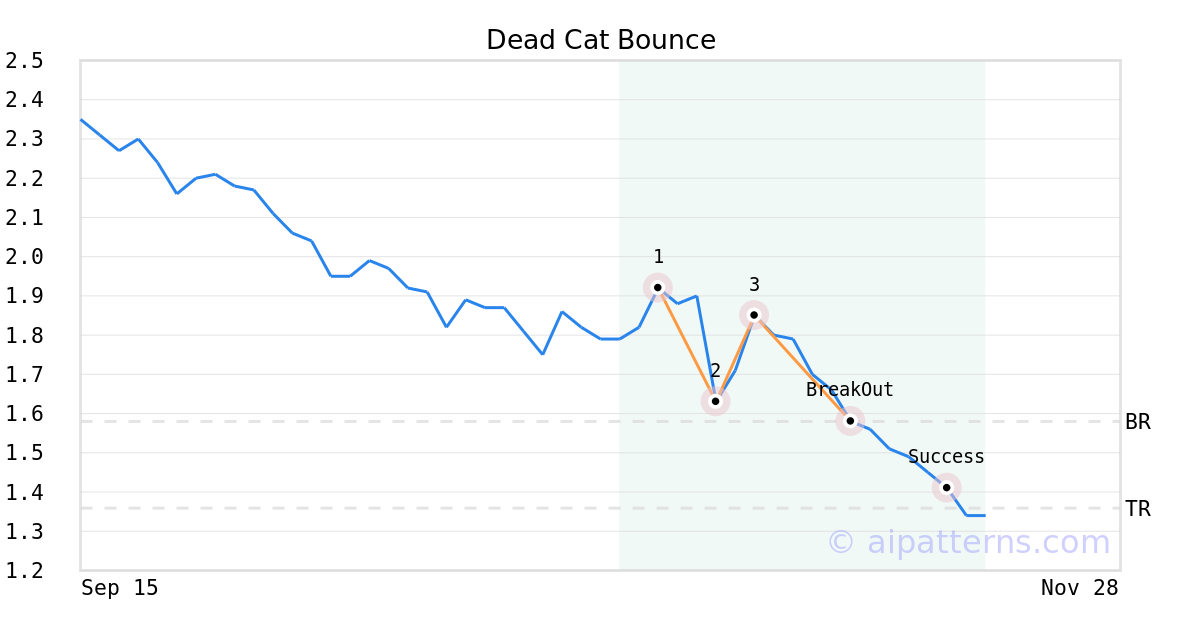 On November 10, 2025, A.I.dvisor detected a Dead Cat Bounce Pattern (Bearish) for NN (NNBR, $1.58). On November 10, 2025, A.I.dvisor confirmed the Bearish pattern, setting a target price of the stock. On November 17, 2025, the stock hit the target price of $1.36 – resulting in a +1 gain for traders who shorted the stock on the pattern detection date.