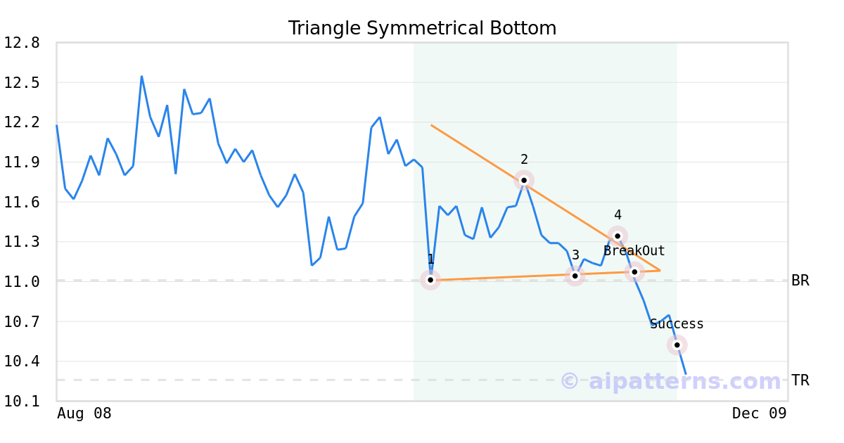 On November 13, 2025, A.I.dvisor detected a Triangle Symmetrical Bottom Pattern (Bearish) for Noah Holdings Limited (NOAH, $11.07). On November 13, 2025, A.I.dvisor confirmed the Bearish pattern, setting a target price of the stock. On November 20, 2025, the stock hit the target price of $10.26 – resulting in a gain for traders who shorted the stock on the pattern detection date.