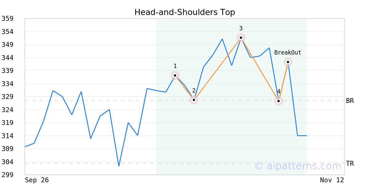 On November 05, 2025, A.I.dvisor detected a Head-and-Shoulders Top Pattern (Bearish) for Nova Ltd (NVMI, $342.22). On November 05, 2025, A.I.dvisor confirmed the Bearish pattern, setting a target price of the stock. On November 05, 2025, the stock hit the target price of $303.38 – resulting in a gain for traders who shorted the stock on the pattern detection date.