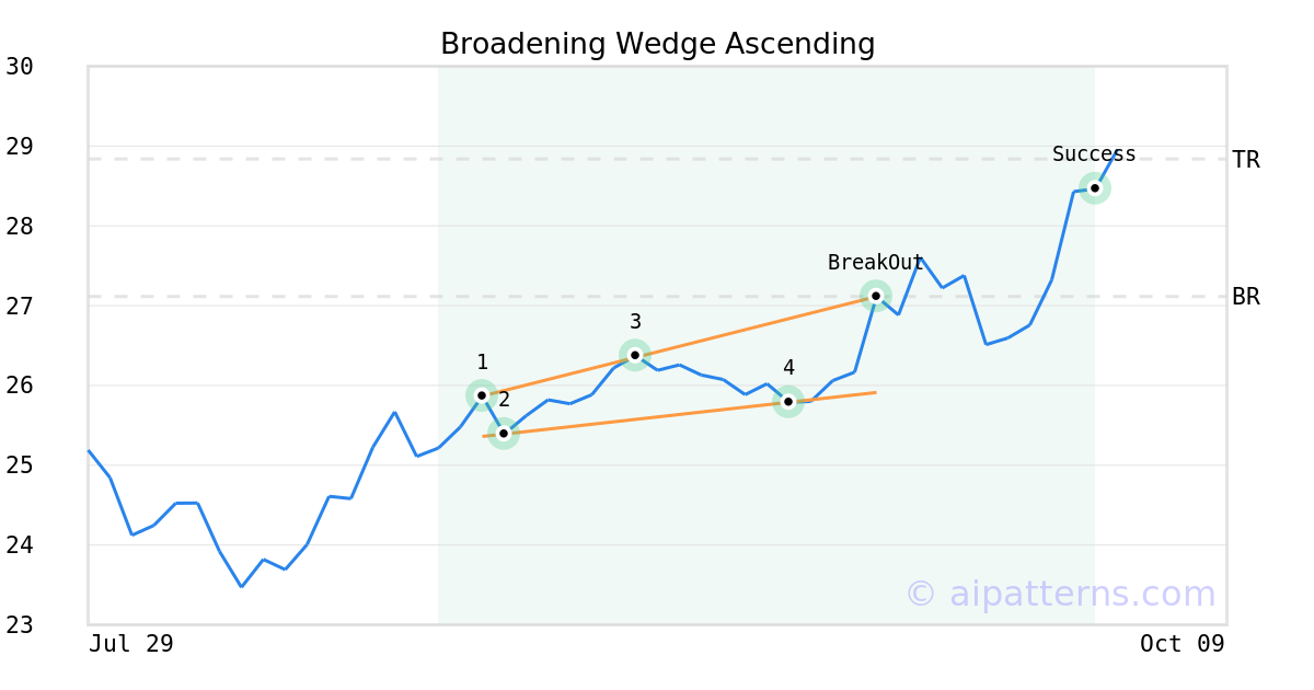 +4.98% Gain from a Successful pattern Broadening Wedge Ascending