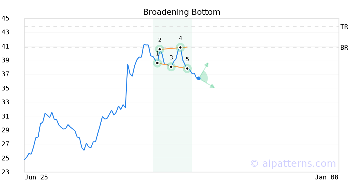 The Tickeron PE Growth Rating for this company is (best 1 - 100 worst), pointing to worse than average earnings growth. The PE Growth rating is based on a comparative analysis of stock PE ratio increase over the last 12 months compared against S&P 500 index constituents.